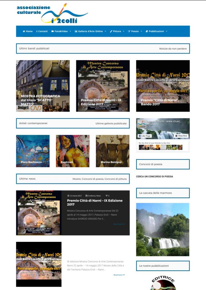 Sito web realizzato per l’associazione culturale I due colli di Terni. L’associazione, senza scopo di lucro, intende diffondere la conoscenza della cultura artistica in generale quale strumento per la realizzazione del diritto di ogni essere umano ad esprimersi e comunicare.